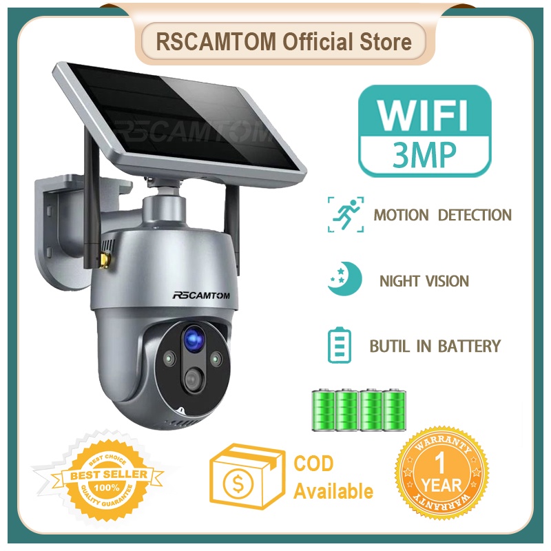 Rscamtom Solar HD 3MP PTZ Camera Outdoor Wifi Color Night Version CCTV